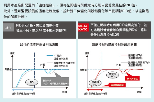 利用本產品所配置的「適應控制」,便可在開機時與穩定時分別自動算出最佳的PID值。