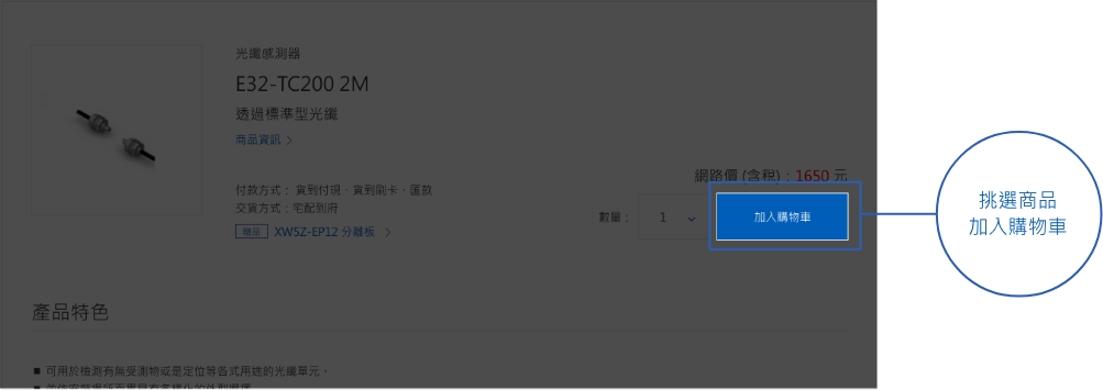 瀏覽商品詳細規格後,將購買商品加入購物車,最後點選”結帳”。